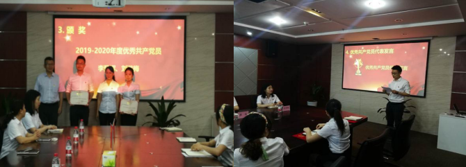 大会在庄重的国歌中拉开帷幕,,,,,,新能源党支部宣传委员、公司总司理张涛同志宣读《中共重庆韦德网站官方入口新能源有限公司支部委员会关于表扬2019-2020年度优异共产党员决议》,,,,,,对李登辉、刘洪梅两名同志举行了表扬,,,,,,并向优异共产党员揭晓了声誉证书。。。。。优异共产党员代表李登辉同志作了讲话。。。。。