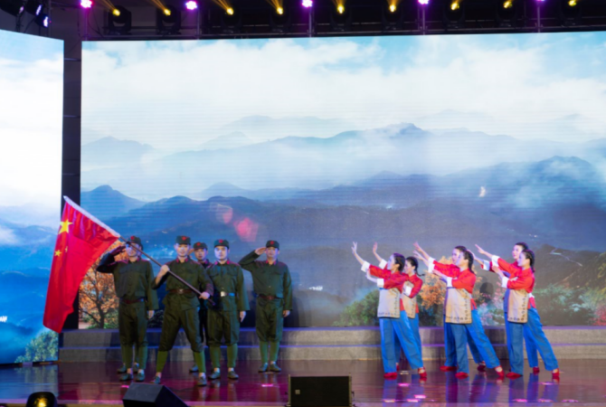 接下来,,,,,,,《五星红旗》《党旗下的誓言》《不染》《沁园春·雪》《天耀中华》等节目轮替上演,,,,,,,包括舞蹈、朗诵、歌曲、歌伴舞等多种形式,,,,,,,演泛起场经精彩一直、热潮迭起。。。。。。。。台上“艺术家”们倾情演绎,,,,,,,热情旷达,,,,,,,细腻的舞台配景和激昂的旋律,,,,,,,让台下观众们感受到了一次精彩的视听盛宴。。。。。。。。