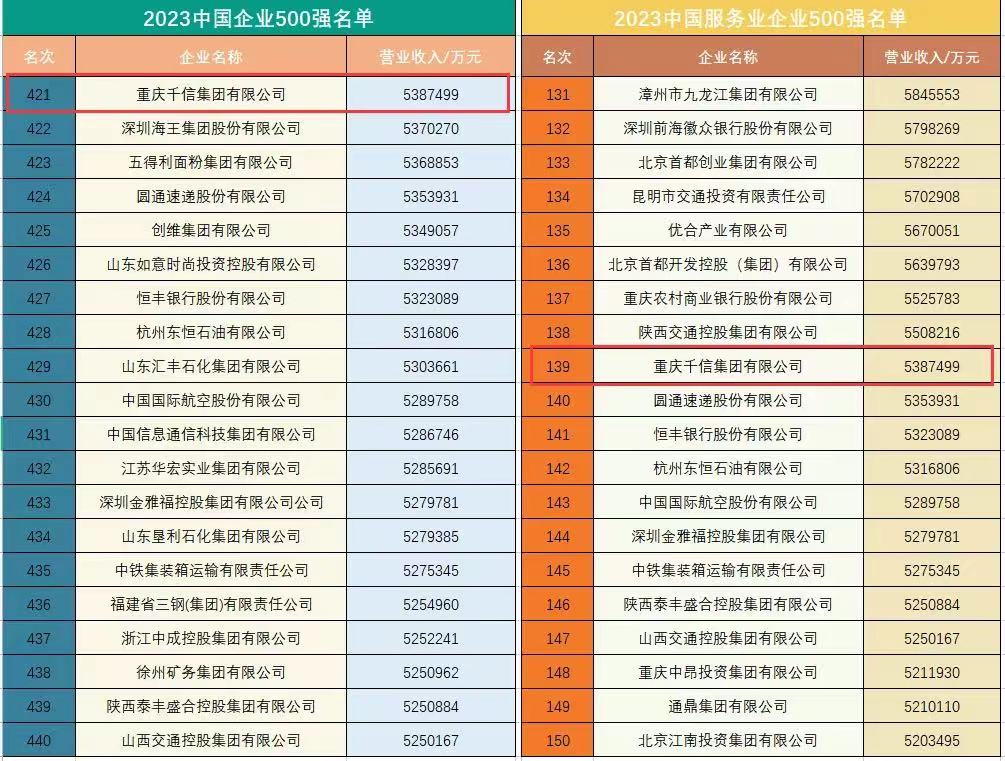 9月19日-21日,,,,,,,,“2023中国500强企业岑岭论坛”在安徽合肥举行,,,,,,,,论坛主题为“奋进中国式现代化新征程 加速建设天下一流企业”。。。。。。。中国企业团结会、中国企业家协会参照国际通行做法,,,,,,,,以 2022 年企业营业收入为入围标准,,,,,,,,正式宣布2023中国企业500强、2023中国服务业500强榜单。。。。。。。
