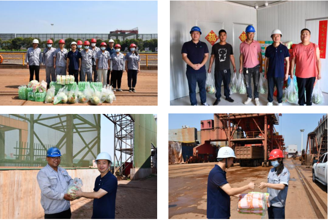 7月12日,,,,,,,韦德网站官方入口国际党委书记、执行董事彭念,,,,,,,党委副书记、纪委书记、工会主席方骏到重庆韦德网站官方入口金属循环工业园项目部为一线事情职员约70余人送去矿泉水、藿香正气液、饮料、西瓜等防暑降温慰问品。。。。。