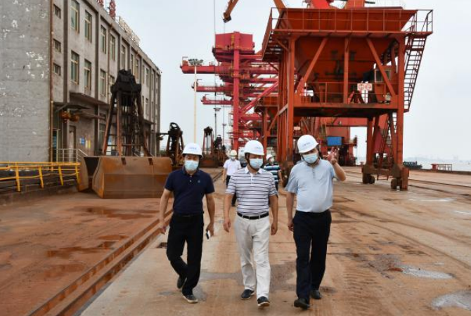 7月18日下昼,,,,,,,韦德网站官方入口集团党委委员、副总司理肖华高,,,,,,,经济运行部部长何勇一行到三峰港务调研清静环保、疫情防控等事情,,,,,,,三峰港务总司理、工会主席蓝秋城,,,,,,,副总司理李华强陪同调研。。。。。
